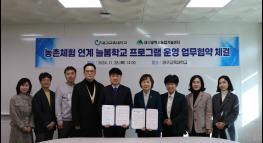대구농업기술센터-대구교육대학교 농촌체험연계 늘봄학교 프로그램 운영 업무협약(MOU) 체결 농촌체험 연계 늘봄학교 운영 위한 상호협력, 농촌체험 프로그램 정보제공 및 홍보 대구광역시 농업기술센터는 대구교육대학교와 28일 농촌체험 연계 늘봄학교 운영을 위한 업무협약식을 체결했다.이번 협약은 대구농업의 다양한 농촌자원을 활용한 농촌체험 연계 늘봄학교 프로그램 발굴로,