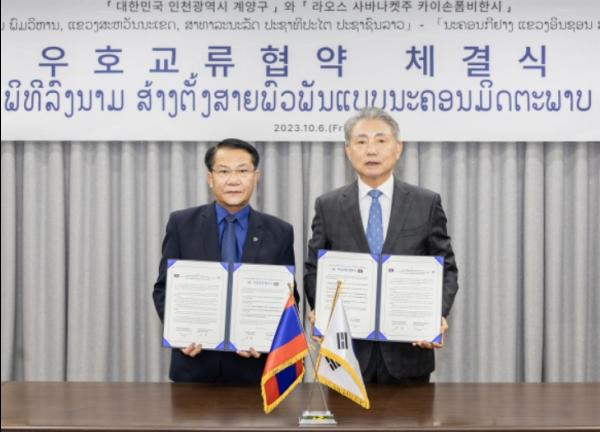 인천광역시 계양구는 6일 계양구를 방문한 라오스 사바나켓주 카이손폼비한시와 두 도시 간 의료, 체육, 경제 등 다방면의 교류 협력 추진을 위한 우호교류 협약을 체결했다고 밝혔다.