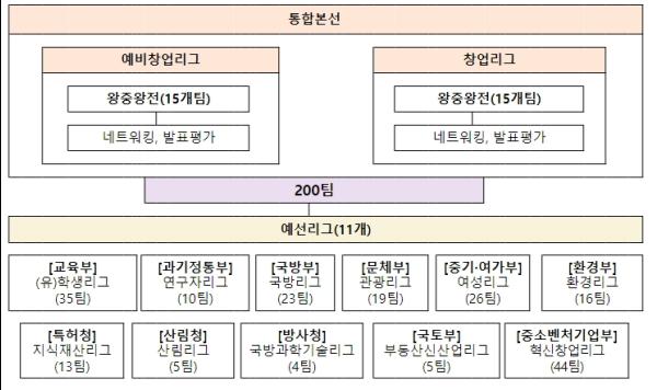 한편, 도전! 케이(K)-창업기업(스타트업) 2023의 왕중왕전은 예비창업자 대상인 예비창업대전(리그)(15조(팀))와 업력 3년 이내의 창업기업 대상인 창업대전(리그)(15조(팀))로 나눠 공개 투자유치(피칭) 방식으로 10월말 또는 11월초에 개최될 예정이며, 각 대전(리그)별로 대상 포함 상위(TOP) 10을 선발해 20조(팀)에게 총 상금 15억원, 대통령상 등 총 20점을 시상할 계획이다.