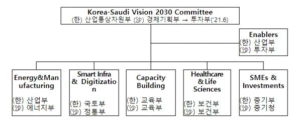 양측은 우선 작년 11월 모하메드 빈 살만 사우디 왕세자 겸 총리의 공식 방한 계기 체결된 26건의 한-사우디 정상경제외교 성과가 정상적으로 추진 중임을 확인했고, 특히, 향후 경제협력 성과를 동 위원회를 통해 양국이 관리해 나갈 것에 대해 합의했다. 또한, ?한-사우디 비전 2030 위원회?의 기존 39개 협력과제의 이행상황을 점검하는 한편, 총 17건의 신규 협력과제를 발굴함으로써 총 56개의 협력사업을 본격적으로 추진하기로 합의했다.