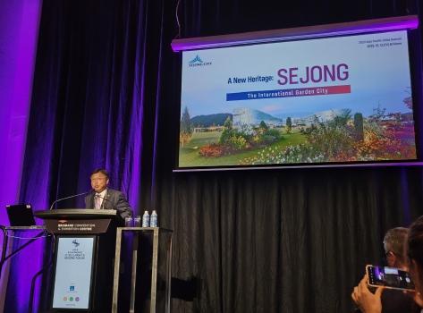 이승원 경제부시장은 유산의 도시 사례로 ‘새로운 유산: 정원도시 세종’에 대해 발표하며 지속가능한 미래 성장을 견인할 수 있는 핵심 열쇠로 정원도시를 제시했다.