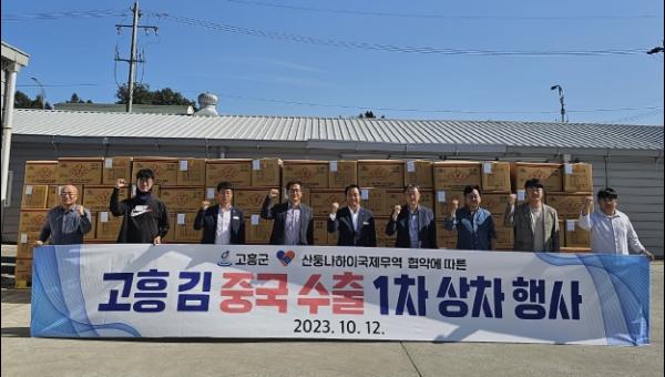 고흥군은 지난 12일 열림푸드에서 ‘고흥 김, 중국 수출 상차 행사’를 가졌다.