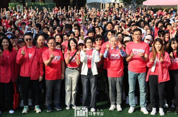 김건희 여사는 10월 15일 오전, 10월 유방암 예방의 달을 맞아 서울 용산공원에서 열린 ‘2023 핑크 페스티벌’에 참석했다. 올해로 23회째를 맞이한 핑크 페스티벌은 유방암 조기검진의 중요성을 알리고 유방암에 대한 인식을 향상하기 위한 핑크리본 캠페인의 일환이다. 지난 12일(목) 대한암협회 명예회장으로 추대된 김 여사는 첫 행보로 2023 핑크 페스티벌 현장을 찾았다.
