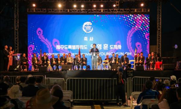 오영훈 제주도지사는 개막식 축사를 통해 “제주는 한인들이 밀집해 있는 서부지역을 교두보 삼아 미국 시장 진출을 확대하고자 한다”며 “청정환경에서 생산된 1차 농·수산물은 물론 소주 등 공산품까지 우수한 품질과 청정이미지를 앞세워 미국 소비자들을 공략하겠다”고 밝혔다.