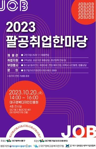 대구 동구청은 오는 20일, 대구경북디자인진흥원 4층 전시관에서 동구 청년 및 중년층 취업지원을 위한 ‘2023년 팔공취업한마당’ 행사를 개최한다.