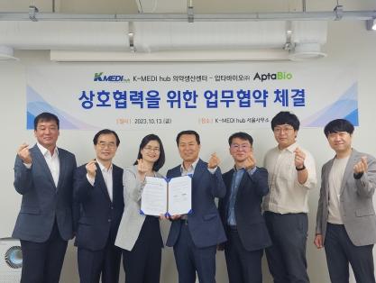 케이메디허브는 산화 스트레스를 조절하는 글로벌 임상 의약품 생산을 지원하기 위해 지난 13일 서울바이오허브에서 압타바이오와 업무협약을 체결했다.