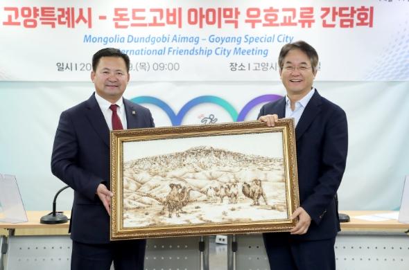 몽골 돈드고비 아이막 대표단이 19일 고양특례시를 방문했다. 이동환 고양특례시장은 고양시청에서 우호 교류 간담회를 열고 도시 간 협력 강화 방안을 논의했다.