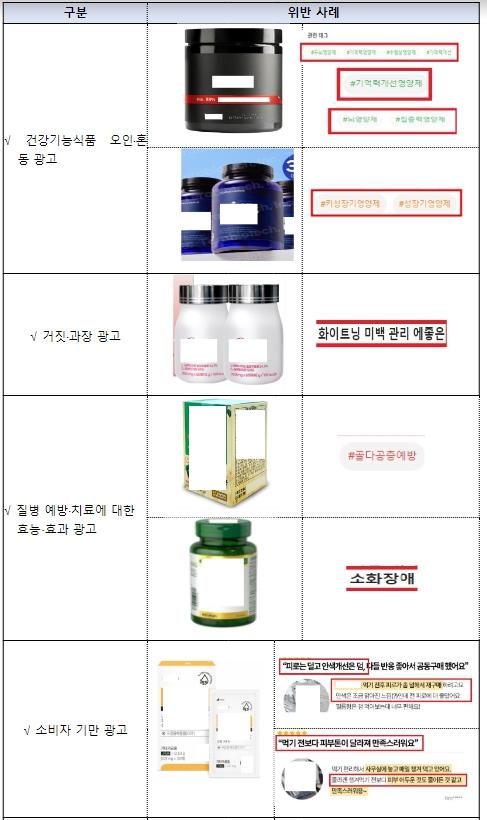 이번 점검은 온라인 쇼핑몰과 인스타그램 등 누리소통망 서비스(SNS)에서 ▲부당광고 행위가 반복적으로 적발된 업체의 식품?건강기능식품 판매 게시물 ▲일반식품에 ‘키 성장’ 등으로 광고해 판매하는 게시물을 대상으로 실시됐다.