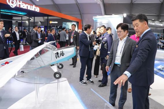 또한 김포시에 본사를 두고 있는 ㈜우리별 이정석 대표를 만나 격려와 응원의 인사를 전했다. ㈜우리별은 이번 전시회에 참가해 최신의 ‘광역 안티드론 방어시스템(WADS, Wide-area Anti-drone Defense System)’과 ‘전장 전자기만 시스템’ 등 명품 솔루션을 선보이고 있다.
