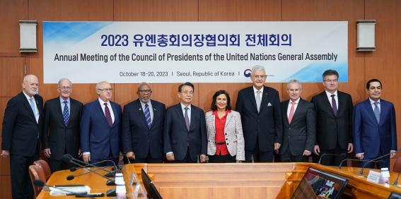 유엔총회의장협의회는 전·현직 유엔 총회의장들로 구성된 협의체로, ?주요 유엔 기구와의 협력 촉진 ?전직 총회 의장 간 소통 강화 ?유엔의 평화·안보·개발 활동 지원 등을 목적으로 1997.11월 출범했다. 한승수 전 국무총리(제56차 유엔 총회의장)는 2022.10월 3년 임기의 유엔총회의장협의회 의장으로 당선된 바 있다.
