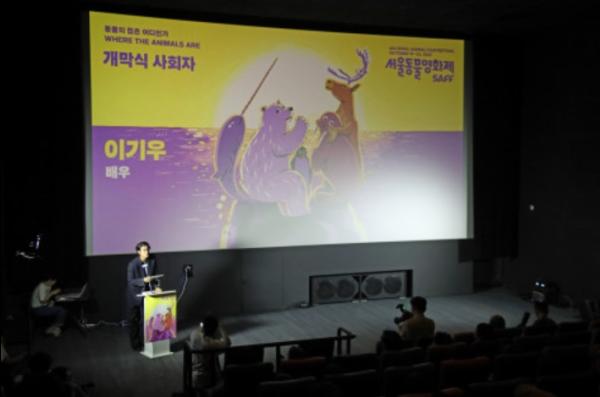 19일 저녁 160여 명의 관객이 객석을 가득 채운 가운데 제6회 서울동물영화제의 공식 트레일러와 상영작 하이라이트가 공개되며 개막식은 시작됐다. 개막식 사회는 서울동물영화제홍보대사 ‘애니멀프렌즈’로 임명된 배우 이기우가 맡았다.