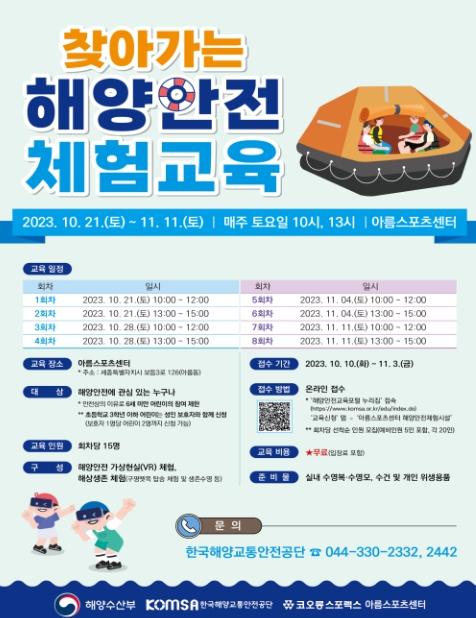 해양수산부는 10월 21일부터 11월 11일까지 세종특별자치시 아름스포츠센터에서 ‘찾아가는 해양안전체험시설’을 추가로 운영한다.