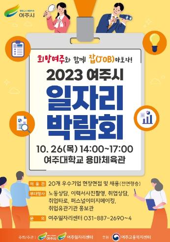 여주시는 오는 10월 26일 여주대학교(총장 배선영) 용마체육관에서 ‘2023 여주시 일자리박람회’를 개최한다고 밝혔다.
