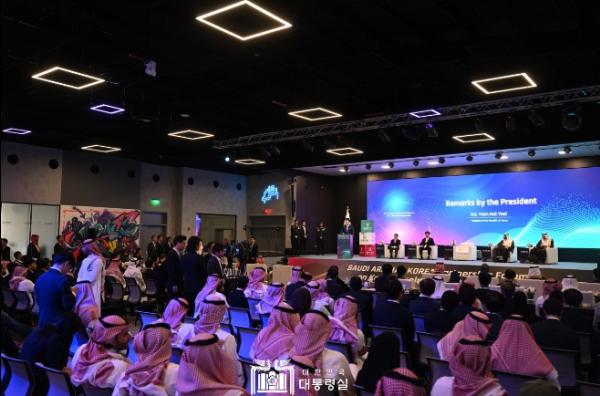 한편, 대통령은 포럼 참석 전 행사장 한편에 마련된 사우디의 주요 연구성과 전시부스를 참관했다. 이 자리에서 사우디 최초 우주인이 수행한 우주정거장 실험, 사우디의 가상병원 시스템, 반도체 관련 연구성과 등을 소개받았다.