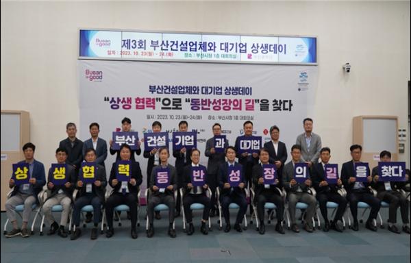 부산시는 10월 23일부터 24일까지 양일간 시청 대회의실 및 대강당에서 '부산건설업체와 대기업, 상생협력으로 동반성장의 길을 찾다'라는주제로 '제3회 부산건설업체-건설대기업 상생데이'를 개최하고 있다고 밝혔다.