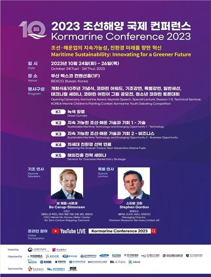 기조강연에는 보 체럽-시몬센 메르스크 맥킨니 뫼러 제로 카본 쉬핑센터 최고경영자(Maersk CEO)가 연사로 나서며, 스티브 고든 클락슨 리서치 서비스 리미티드 경영이사도 특별연사로 참여한다.