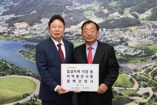 이에 인구감소지역으로 지정받은 가평군이 접경지역으로 지정받아 국비사업 및 특별교부세 등 재정지원과 2주택자에 대한 종부세 및 양도세 등 세제혜택을 받을 수 있도록 ‘접경지역 지정을 위한 시행령 개정’을 건의했다.