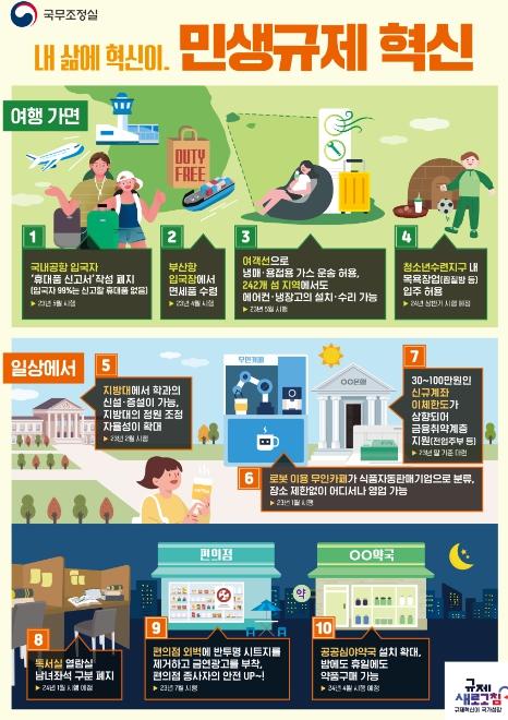 국무조정실은 새 정부 출범 이후 추진한 민생 규제혁신 사례 중 국민 생활과 밀접한 사례를 대상으로 대국민 온라인 투표를 실시한다.
