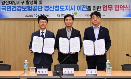 경산시는 24일 시청 소회의실에서 한국토지주택공사 대구경북지역본부, 국민건강보험공단 경산청도지사와 대임지구 활성화 및 국민건강보험공단 경산청도지사 이전을 위한 상호 협력 업무협약을 체결했다.