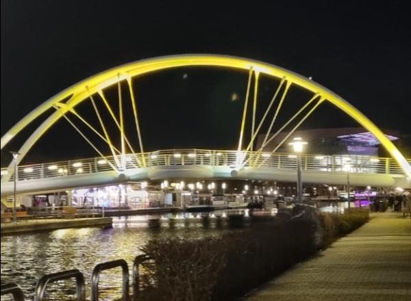 인천경제청은 수변을 횡단하는 보행교는 색상 변환을 지양하고 석양색(따뜻한 흰색)을 기본으로 교량의 형태미를 돋보이도록 주력했으며 화이트 계열 색상의 톤(Tone) 변환으로 ‘마치 교량이 숨을 쉬는 듯한’ 생동감을 주도록 연출했다.