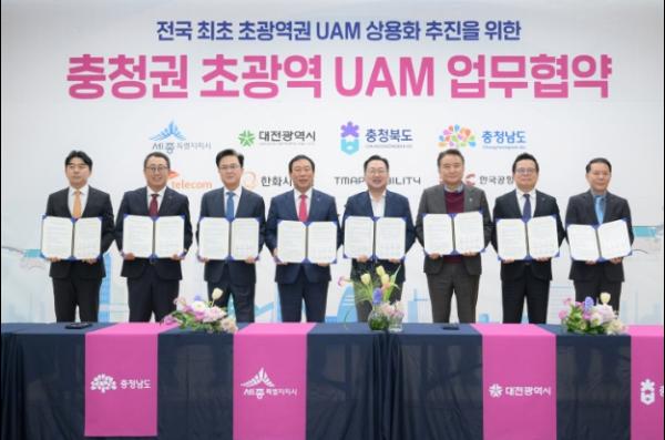 이날 협약식에 참석한 최민호 시장을 비롯한 충청권 자치단체장과 기업대표는 충청권이 가진 강점을 적극 활용해 전국 최초 초광역권 UAM 성공 사례를 만드는데 협력하기로 뜻을 모았다.