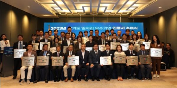경기도는 26일 라마다플라자 수원호텔 오키드홀에서 염태영 경기도 경제부지사, 손일권 경기도일자리재단 서부사업본부장, 일자리 우수기업 인증기업 대표 등 관계자 80여 명이 참석한 가운데 ‘2023년 경기도 일자리 우수기업 인증서 수여식’을 열고 60개 우수기업에 인증서를 수여했다.