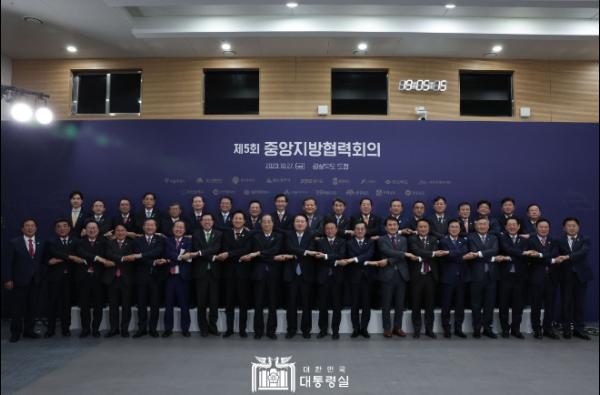 윤석열 대통령은 10월 27일 경상북도 안동시를 방문해 제5차 중앙지방협력회의를 주재하며 지방소멸 위기에 대한 지역 현장의 의견을 청취하고 ‘대한민국 어디서나 잘 사는 지방시대’의 구현을 위한 방안을 모색했다.