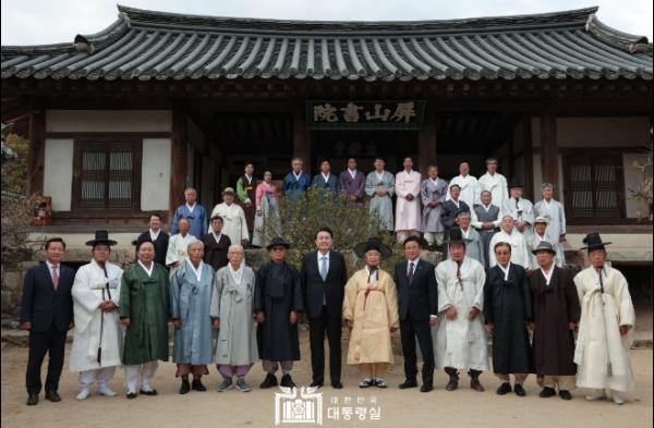 윤석열 대통령은 10월 27일 안동 병산서원을 방문해 우리 사회 정신문화의 큰 스승인 유림 30여 명과 함께 지역 발전의 해법을 찾는 시간을 가졌다.