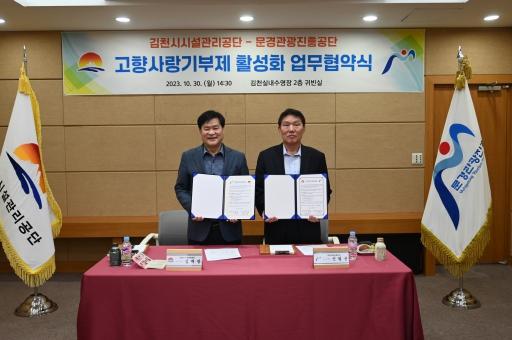 김천시 시설관리공단은 고향사랑기부제 활성화를 위해 지난 30일 문경관광진흥공단과 업무협약을 체결했다고 밝혔다.