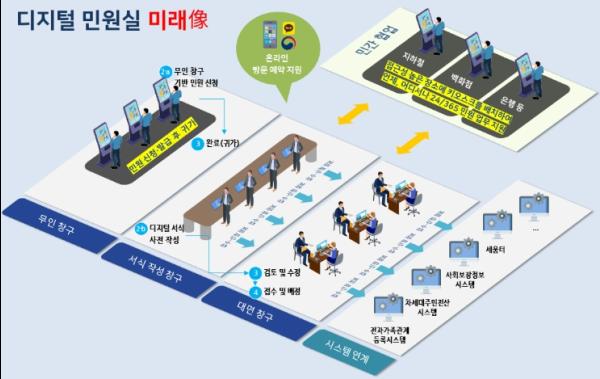 2025년부터 국민이 행정·공공기관에 방문하는 경우에도 쉽고 간편하게 민원·행정서비스를 이용할 수 있도록 민원실이 디지털 환경으로 조성된다.