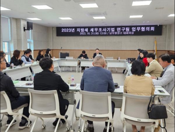 충청북도는 31일 남부출장소에서 도와 11개 시군 세무조사 담당공무원 25명이 참석한 가운데 ‘2023년 지방세 세무조사기법 연구팀 업무협의회’를 개최했다.