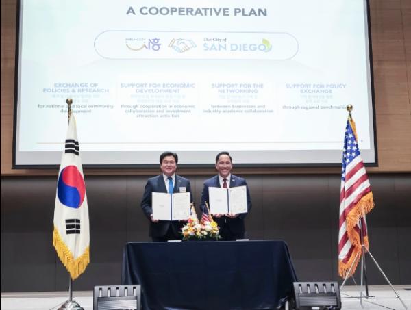 시흥시는 미국 바이오산업의 대표 도시 중 하나인 샌디에이고(San Diego)시와 경제발전 및 우호 협력 증진을 위한 업무협약을 체결하고, 교류 협력 방안 등을 논의했다.