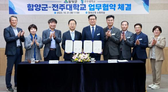 경남 함양군은 지난 31일 함양군청 소회의실에서 지속 가능한 관·학 협력을 통한 청년인구 유입 및 군민의 삶의 질 향상을 위해 전주대학교와 업무협약을 체결했다.