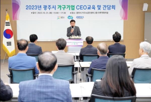 광주시는 10월 31일 광주시 가구소공인센터에서 ‘광주시 가구기업 간담회 및 CEO 교육’을 개최했다.