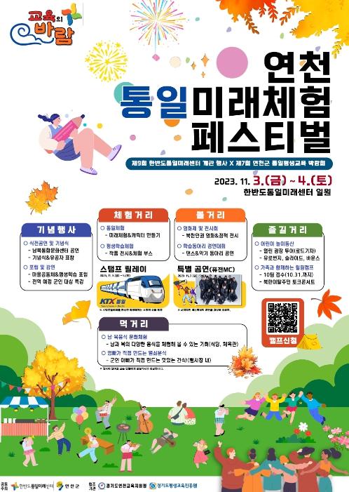 통일미래에 대한 공감대를 확산하고 지역주민과 소통의 장을 마련하고자 열리는 이번 행사는 11월 3일부터 4일까지 이틀간 연천군 전곡읍에 위치한 센터에서 개최된다.