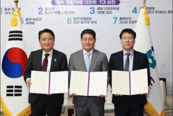 충청북도는 2일 도청에서 충청북도, 청주시, 외국인투자기업인 영신쿼츠㈜와 오창 외국인투자지역 내 반도체 제조장비용 석영유리 생산공장 신설 투자협약을 체결했다.