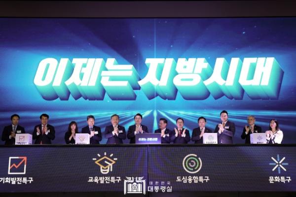 대통령은 기념사를 통해 교육과 의료는 직원과 그 인재의 가족이 가장 중요시하는 분야이기 때문에 이것이 바로 지역의 기업 유치, 균형발전의 핵심이라고 말했다. 대통령은 이어 어느 지역에서든 다양성과 개방성이 존중되는 교육을 통해 국제 경쟁력을 갖춘 인재를 길러낼 수 있어야 한다며 교육 혁신은 바로 지역이 주도해야 하는 것이라고 강조했다. 대통령은 또한 지역이 유치할 직원과 인재들, 그 가족들의 건강과 안전을 확실히 보장하기 위해 정부는 지역 필수 의료 체계를 정립하고 지역의료 혁신 정책을 속도감 있게 추진할 것이라고 밝혔다. 대통령은 기회발전특구, 15개 국가 첨단산업단지와 국가 디지털 혁신지구를 통해 지역경제의 기회의 창을 활짝 열고 지역의 기업 유치와 청년들의 양질의 일자리 창출에도 노력할 것을 약속했다.