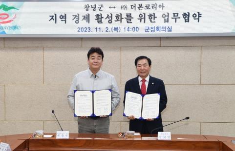 창녕군은 ㈜더본코리아와 ‘지역경제 활성화를 위한 상생발전 업무협약’을 체결했다고 밝혔다.