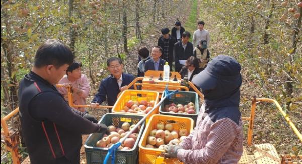 정선용 충청북도 행정부지사는 11월 3일 청주시 미원면 사과 농장을 찾아 도시농부 사업을 점검하고 도시농부와 현장의 목소리를 청취했다.