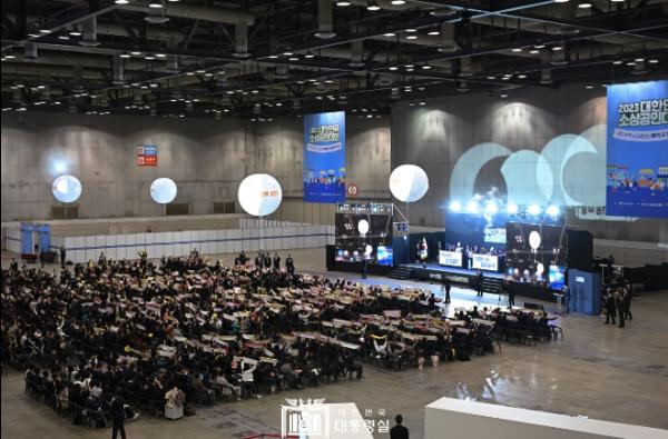 윤석열 대통령은 11월 3일 오전 일산 킨텍스에서 개최된 ‘2023 대한민국 소상공인대회’에 참석했습니다. 올해로 18년째를 맞은 대한민국 소상공인대회에 대통령이 참석한 건 올해가 처음이다. 오늘 행사에는 요식업, 미용업 등 다양한 업종의 소상공인 2천여 명이 전국 각지에서 모였다.