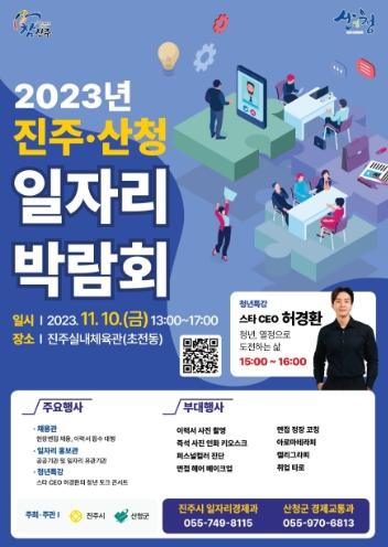 진주시와 산청군이 지역 고용시장의 활성화와 구인·구직난 해소를 위해 오는 10일 초전동 진주실내체육관에서 ‘2023년 진주-산청 일자리박람회’를 개최한다.