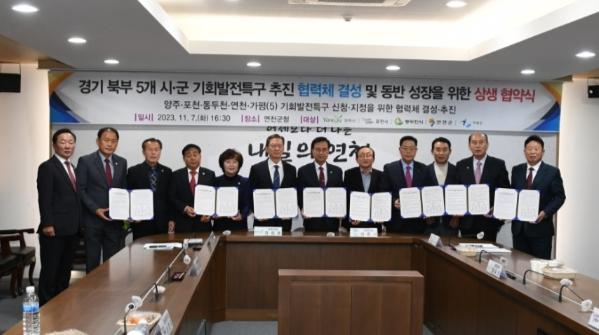 이번 협약은 경기 북부 5개 시군이 상호 협력해 수도권 내 접경 지역의 지역적 실정을 널리 알리고 국가 지역균형발전의 핵심 정책인 ‘기회발전특구 신청?지정’에 전략적으로 연대해 지역 성장 기반을 마련하는 것을 목표로 한다.