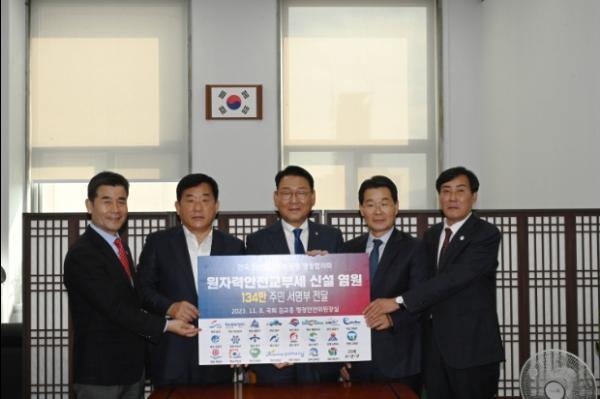 김영길 전국원전인근지역 동맹 행정협의회 회장(울산 중구청장)은 “지방교부세법 개정안 심사 소관위인 국회 행정안전위원회에 원전인근지역 503만 주민의 염원을 담아 서명부를 전달했다”며 “주민들의 간절한 마음을 헤아려 해당 법안을 적극 검토해 주길 바란다”고 밝혔다.