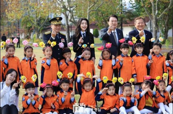 윤석열 대통령은 11월 9일 서울 용산어린이정원 잔디마당에서 열린 ?제61주년 소방의 날 기념식?에 참석했다. 오늘 기념식은 대통령이 최일선 재난 현장에서 국민의 안전을 위해 최선을 다해온 17만 소방 가족을 격려하기 위해 마련됐다.