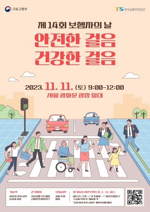 국토교통부는 제14회 ‘보행자의 날(11.11.)’을 맞아 서울 광화문광장에서 11월 11일 오전 10시부터 기념식을 개최한다.