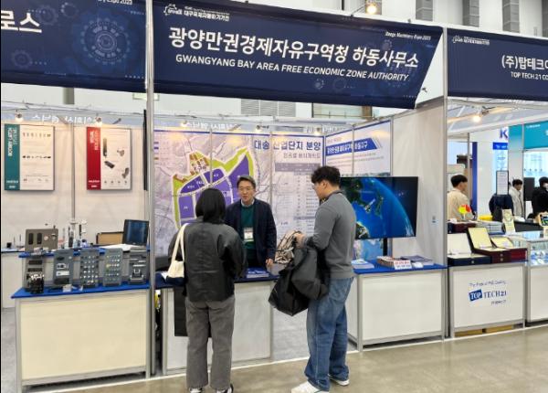 경남 광양만권경제자유구역청(GFEZ) 하동사무소는 11월 14일부터 11월 17일까지 대구컨벤션센터(EXCO)에서 개최하는 ‘대구국제기계산업대전’에 참가하여 하동지구 대송산업단지의 잠재 투자기업 발굴을 위한 홍보활동을 실시한다.