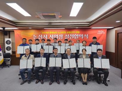 이날 협약식에는 충청남도와 논산시, 대전지방고용노동청 관계자와 논산시 내 7개 기업의 노사대표 등 20여 명이 참석했다. 참석자들은 충남 노사민정 공동선언 정신에 기초해 사람의 생명과 안전을 최우선 가치로 여기고 안전하고 행복한 일터 실현에 협력할 것을 결의했다.