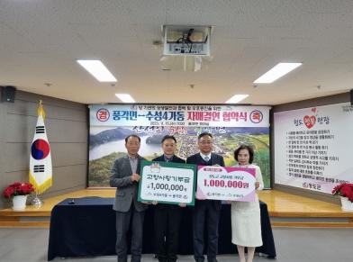 경상북도 청도군 풍각면 대구광역시 수성구 수성4가동은 지난 15일 풍각면사무소 2층 회의실에서 양 기관의 공동 발전을 도모하기 위한 자매결연 협약을 체결했다.