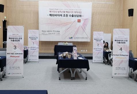 예산군은 해외시장 개척을 위해 태국, 필리핀, 말레이시아 등 3개국 바이어를 초청해 예가정성 가공업체 대상 수출상담회를 성공적으로 개최했다고 17일 밝혔다.