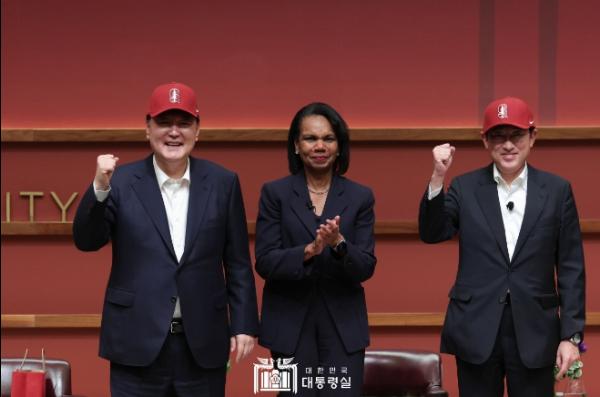 이어진 콘돌리자 라이스 후버연구소장(前 미 국무장관)과의 대담에서 양 정상은 탄소중립과 청정에너지, 양자 기술, 스타트업 등 다양한 주제에 대해 논의했다. 이어서 양 정상은 스탠포드대 학생들의 질문에 답하며 소통하는 시간을 가졌다. 대통령은 특히 기후변화 대응 및 양자 기술 육성·활용 등에 있어 한미일 3국이 국제 협력을 선도해야 함을 강조했습니다. 또한 이를 위한 학생 및 연구자 간 교류도 중요함을 언급했다.